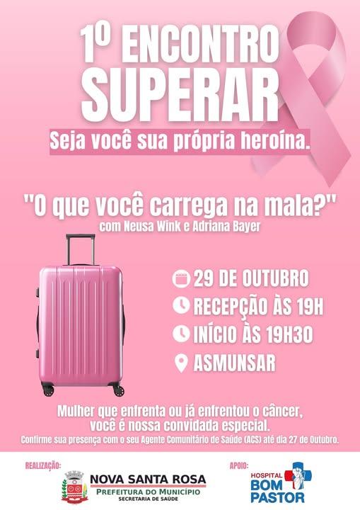 A ação integra a programação do Outubro Rosa, promovida pela Secretaria de Saúde de Nova Santa Rosa, reforçando a importância do cuidado, da prevenção e do apoio emocional às mulheres.